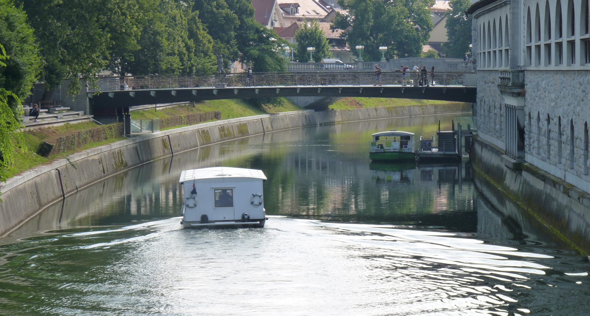 Boat on the river Ljubljanica (going downstream), Ljubljana