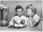 Två barn sitter vid borde...
