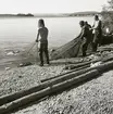 Fyra män står på stranden...